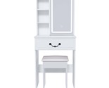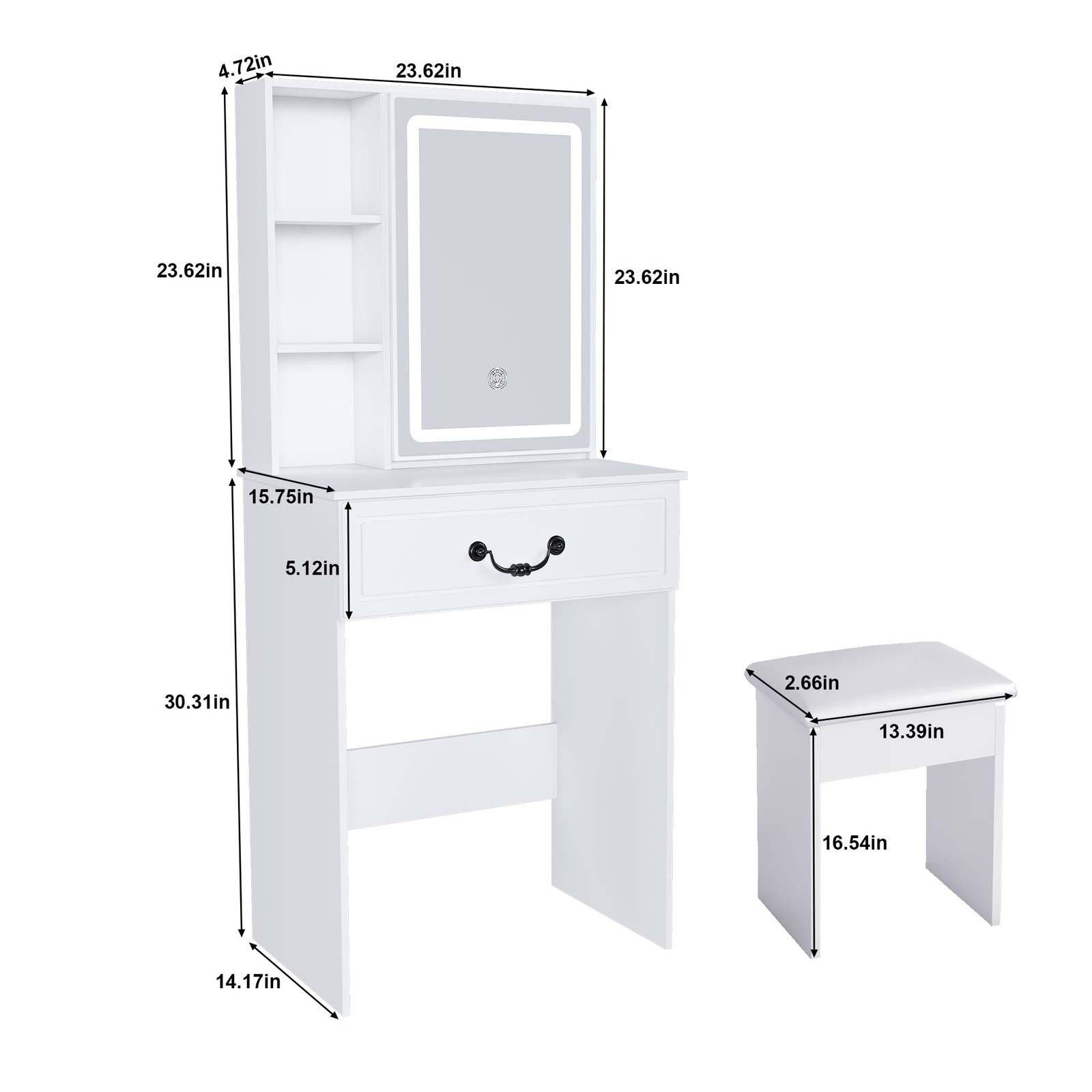 - Modern White Mini Vanity Desk: LED Mirror, Storage, Adjustable Brightness