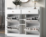 - Modern White Tipping Shoe Cabinet with 4 Flip Drawers for Hallway