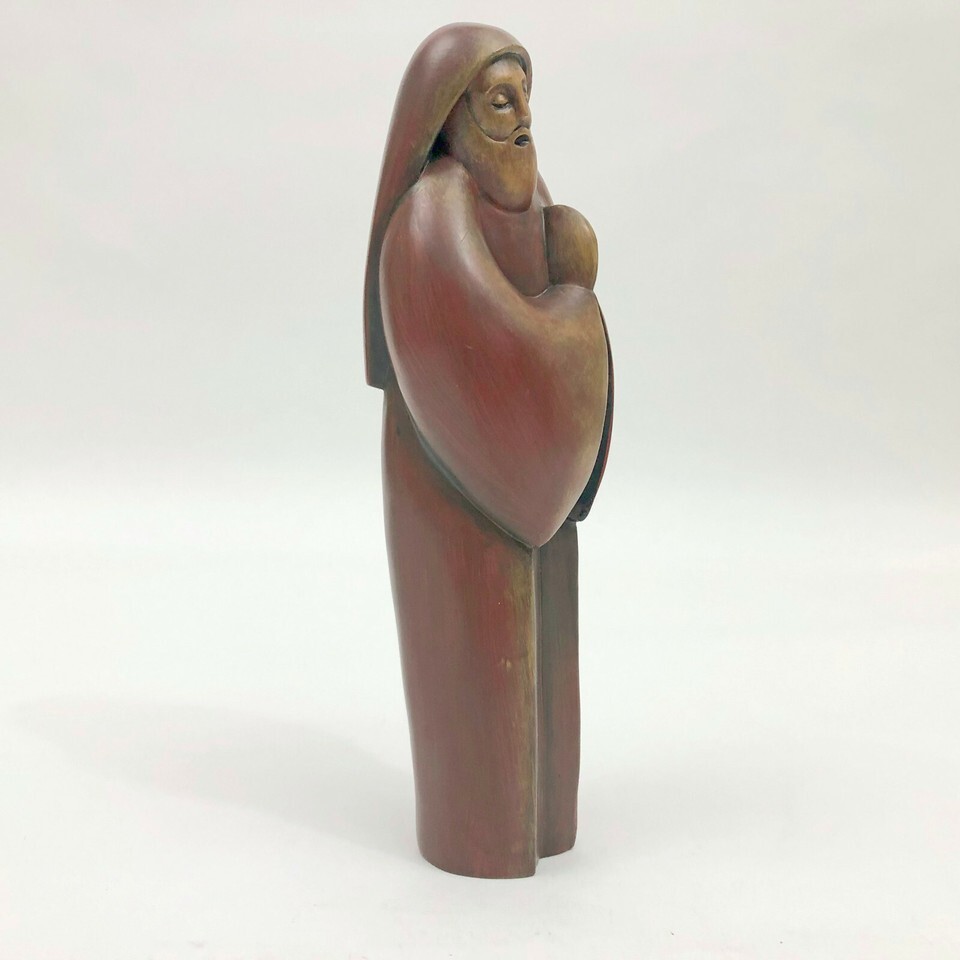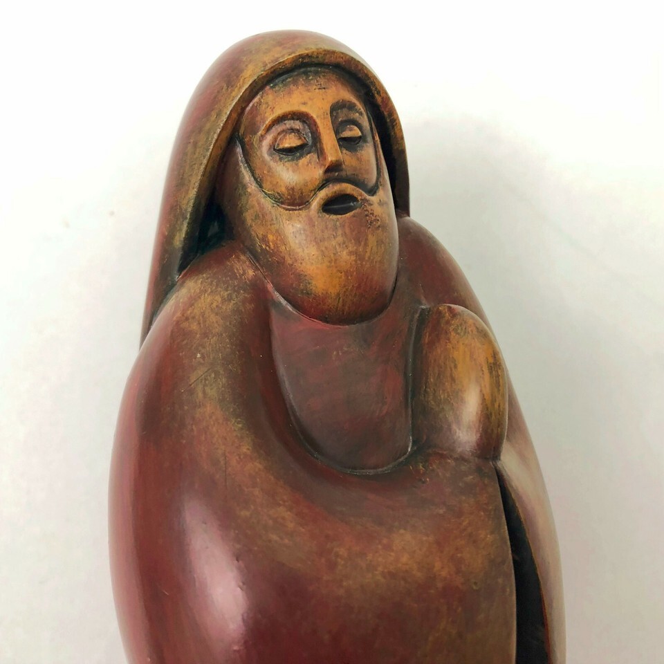 Modernist Praying Figurine Joseph Faux Wood 8x2.5x2.5 inches