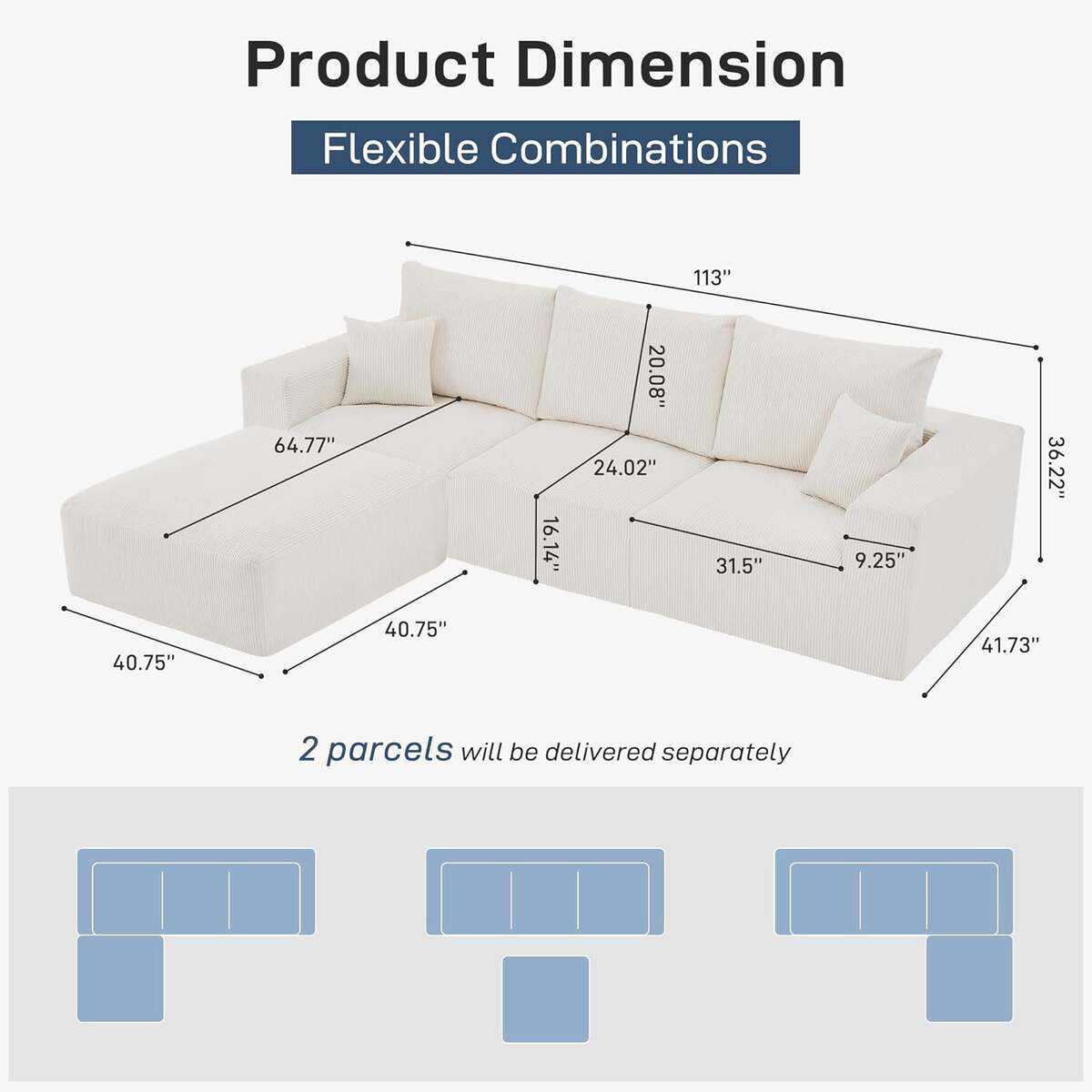 Luxury Corduroy Fabric: 3-Seater Sectional Sofa features high-quality corduroy fabric that is soft to the touch and adds a luxurious feel to your home. This premium material is not only beautiful but also durable and easy to clean. Elevate your living space with elegance and warmth with this exquisite sofa.
