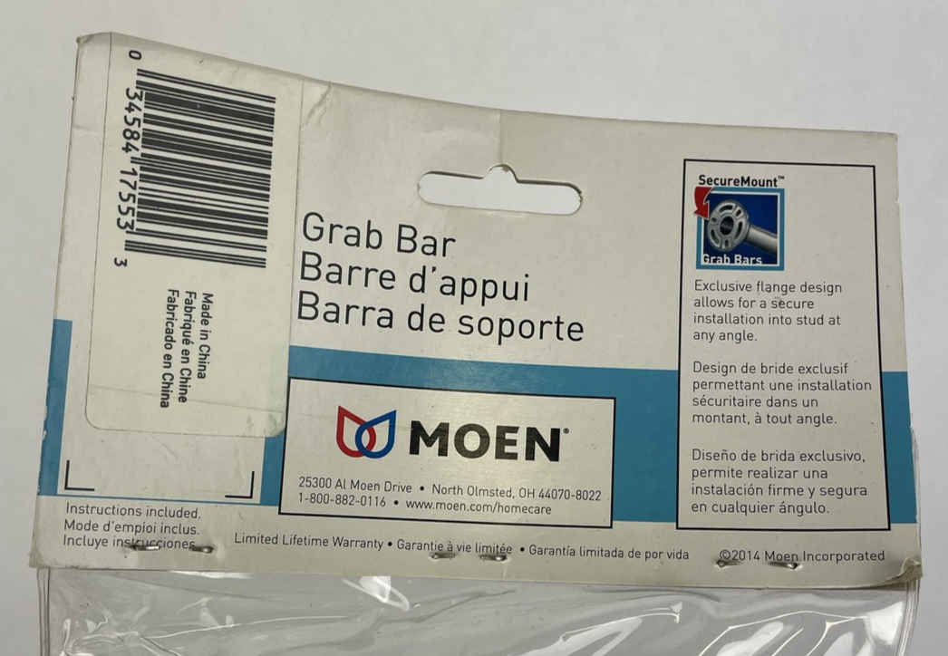 Moen 8912 Stainless Steel 12" x 1-1/2" Grab Bar ADA Compliant Home Safety Care