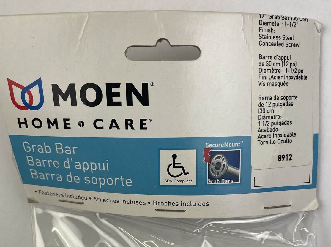 - Moen 8912 Stainless Steel 12" x 1-1/2" Grab Bar ADA Compliant Home Safety Care