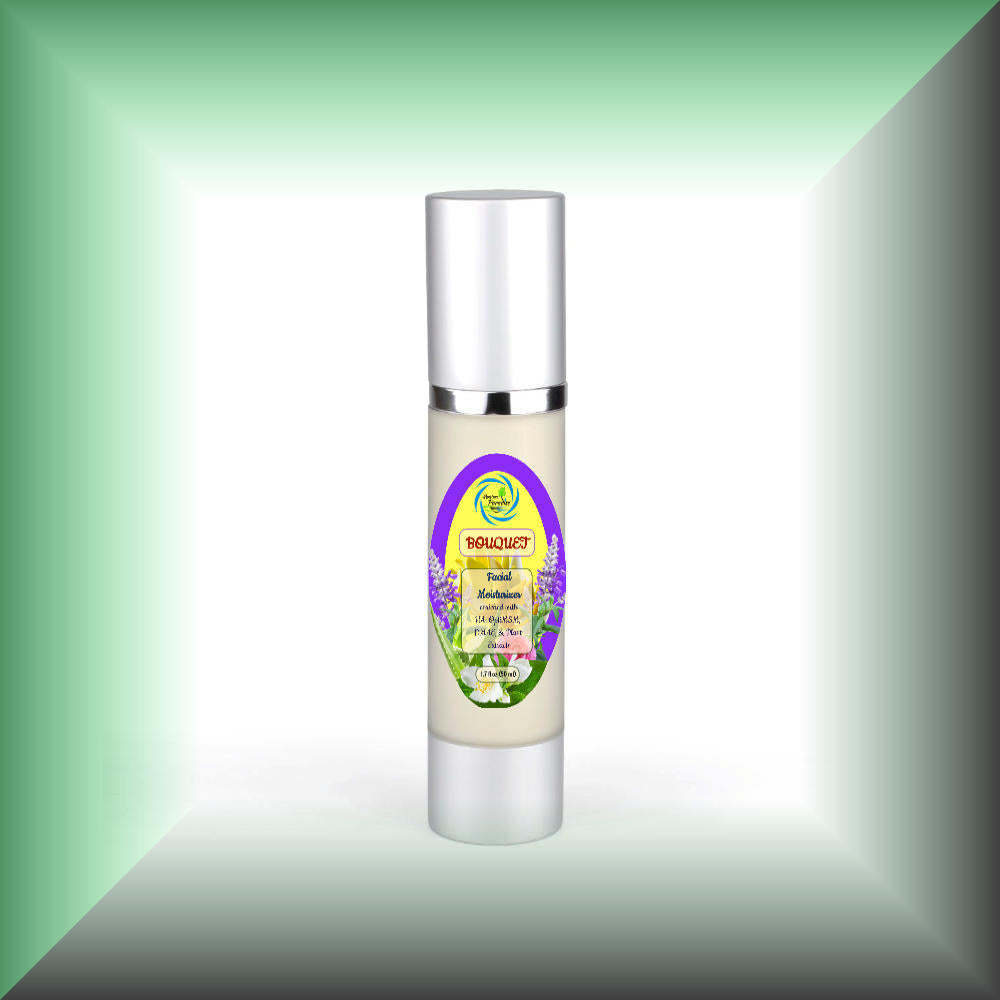 Begin every morning's skin regimen with our BOUQUET Moisturizer for face and neck, containing Hyaluronic Acid and organic Aloe Vera, OptiMSM and DMAE, that hydrate and lock in moisture.