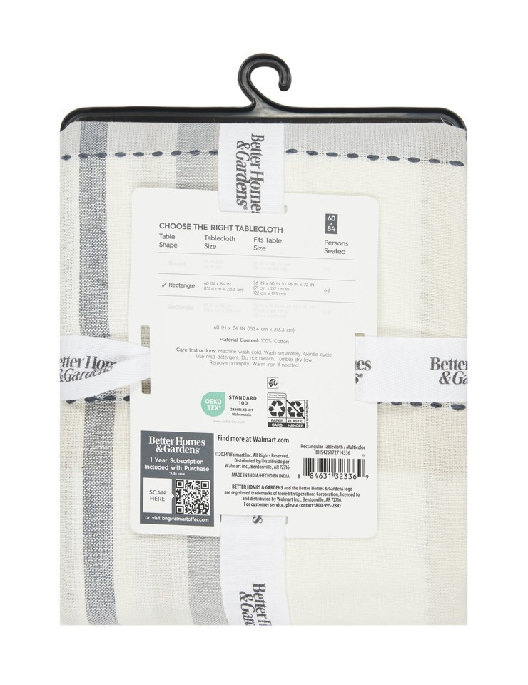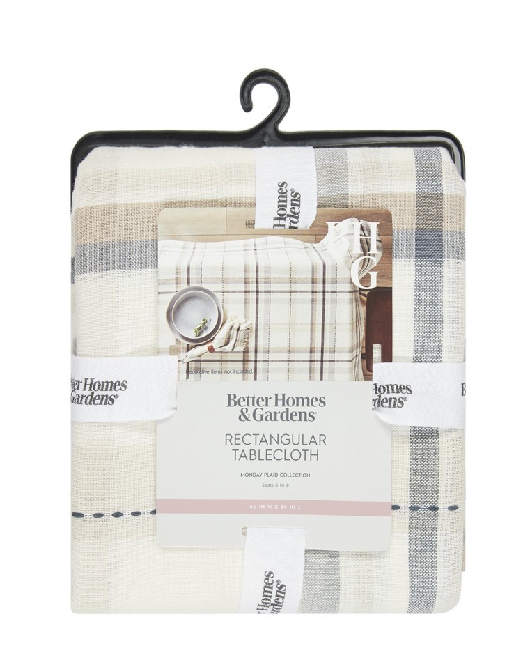 Add some warmth and texture to your dining room decor with the Better Homes and Gardens Monday Plaid Woven Tablecloth. Unlike its namesake, there is nothing drab or dreary about this Monday. The subtle plaid brings some interest to the table without being too bright or overwhelming. Machine washable and 100% cotton, this tablecloth is great for any dinner party decor or family mealtime. The 60?x84? size makes it perfect for the average dining room table or even a picnic table. Adorn your table with spring with the Monday Plaid Woven Tablecloth by Better Homes and Gardens.
