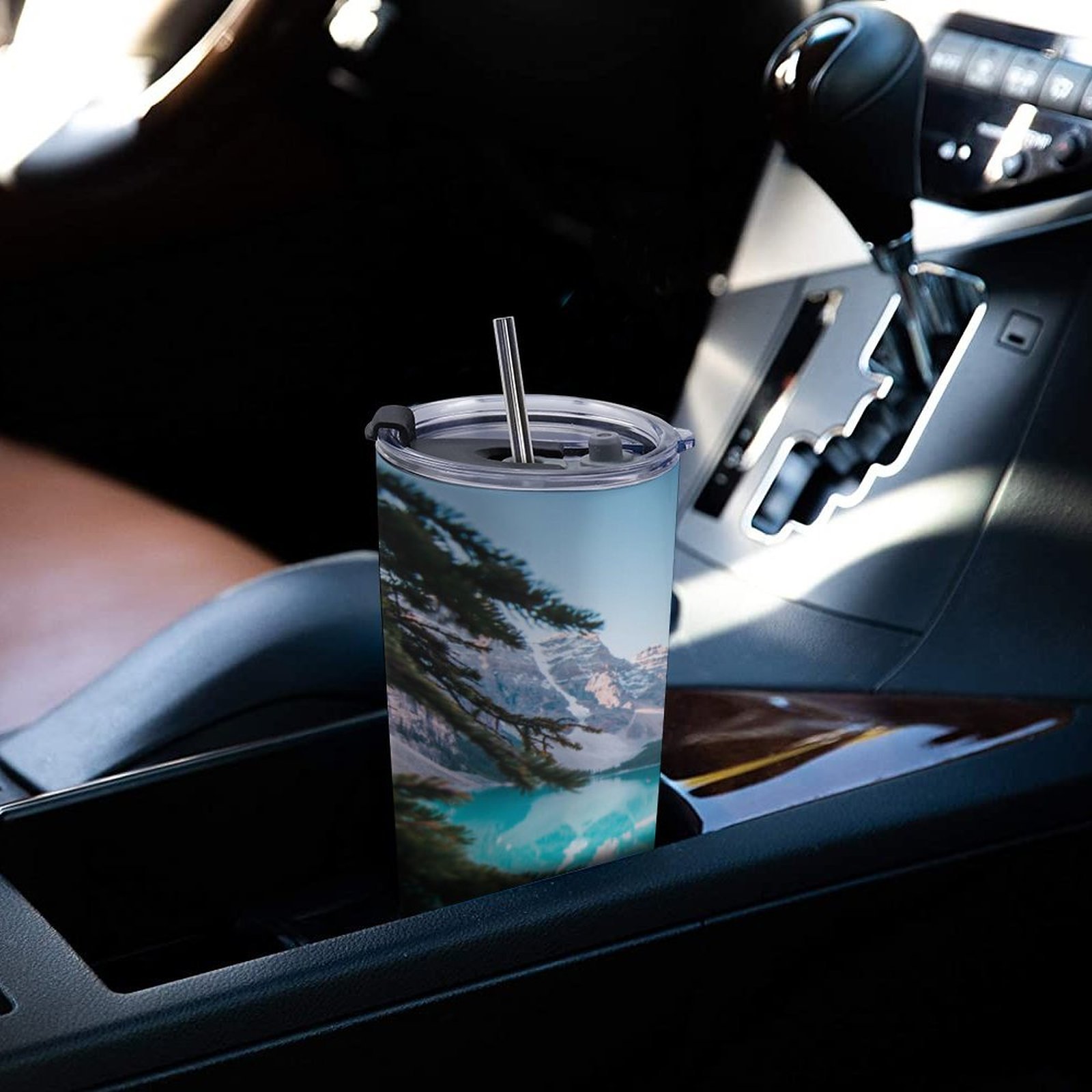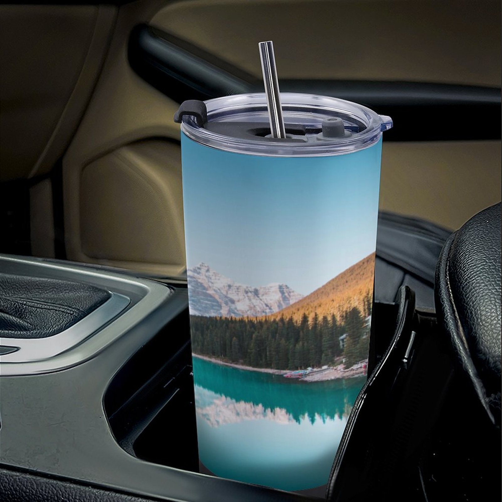 - Mondxflaur Lake Landscapes Steel Thermal Mug Thermos with Straw for Coffee