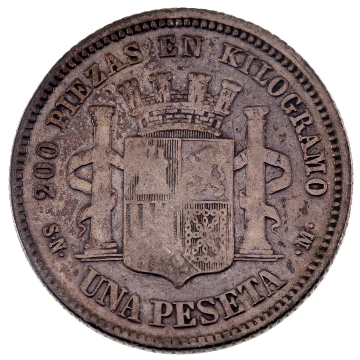 Rev: brazos coronados, pilares, valor inferior