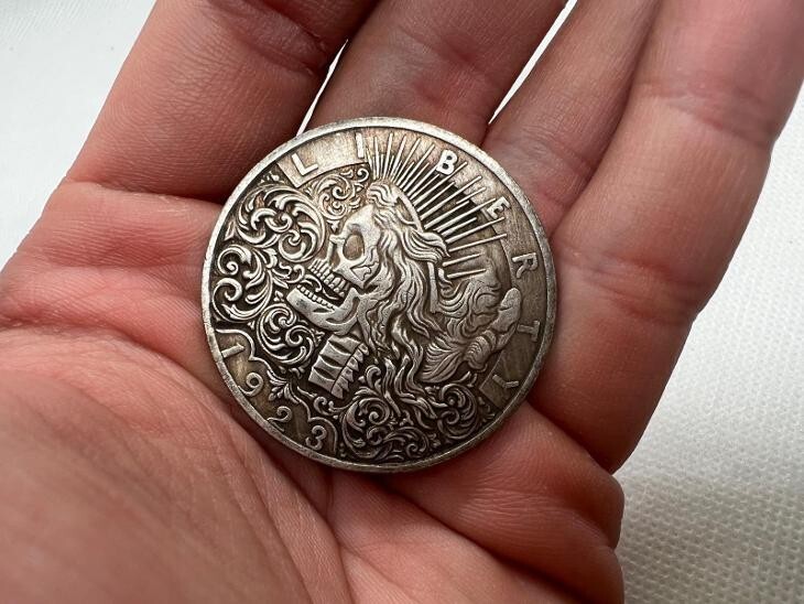 La moneda de fantasía del dolar Morgan de 1923: Liberty Skull Eagle no es simplemente una moneda; es una encarnacion notable de la historia, el arte y la cultura. El anverso de esta llamativa moneda presenta la Calavera de la Libertad, una audaz reinterpretacion de la iconica Dama de la Libertad, que simboliza la libertad y la independencia estadounidenses. Este giro artístico ofrece una nueva perspectiva sobre un diseño clasico, mostrando creatividad e innovacion que lo distingue de las piezas coleccionables convencionales. El elemento de la calavera imparte un caracter distintivo y singularidad, por lo que es una adicion destacada a cualquier coleccion. En el reverso, encontraras el orgulloso aguila americana, acompañada de las inscripciones "One Dollar", "In God We Trust" y "United States of America". Estas palabras reflejan la esencia de la identidad y el orgullo estadounidenses, encapsulando los valores culturales que representa esta moneda. El dolar Morgan de 1923 no solo es una valiosa adicion a cualquier coleccion de monedas, sino tambien un renacimiento del patrimonio historico y artístico. Para cualquier consulta, no dude en ponerse en contacto con nosotros.