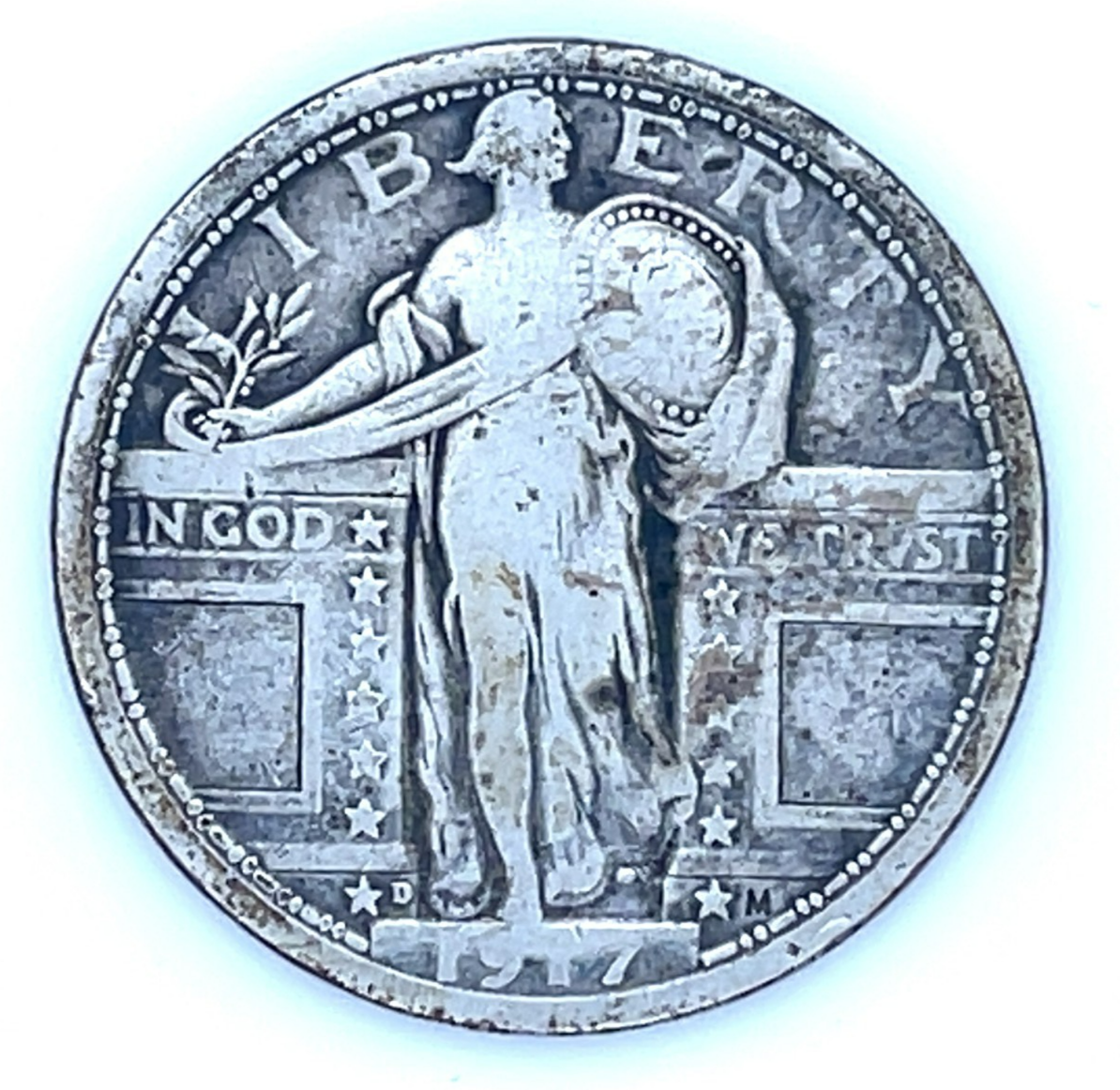 1917-D Type 1 Debout Liberty Quarts En Tres Bon VG Etat, 4-Digit Date