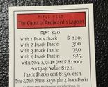 The Monopoly Scooby-Doo Collectors Edition Replacement Part: Title Deed. Produced by USAopoly in 2000, this board game card is designed for players aged 8 and above. It is a unique and collectible piece that enhances the gameplay experience for fans of the iconic cartoon series. Perfect for both casual and competitive game sessions, this Property Card adds an element of nostalgia and fun to the classic Monopoly game.