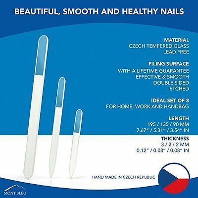 - Mont Bleu Conjunto de 3 limas de uñas de cristal, vidrio templado checo auténtic