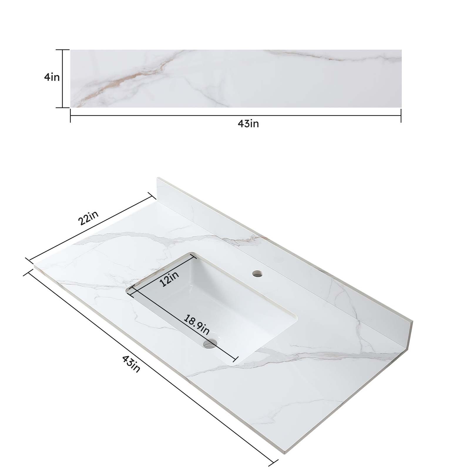 - Montary 43x22" Carrara Gold Sintered Stone Bathroom Vanity Top