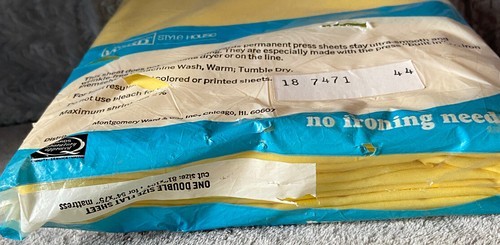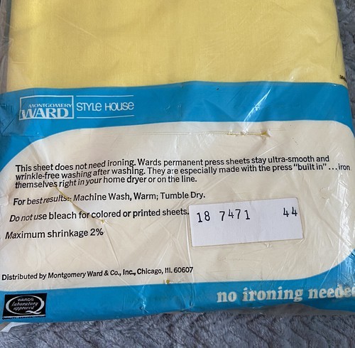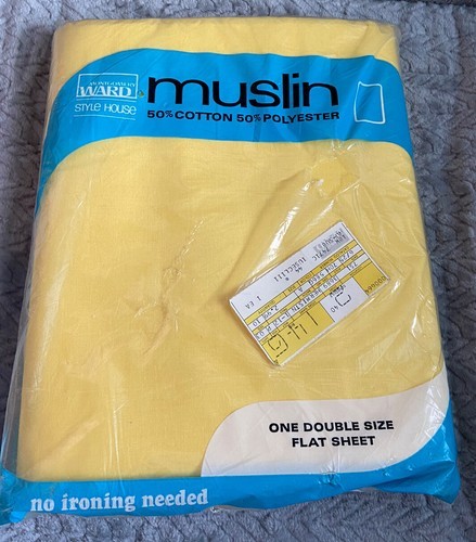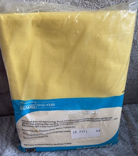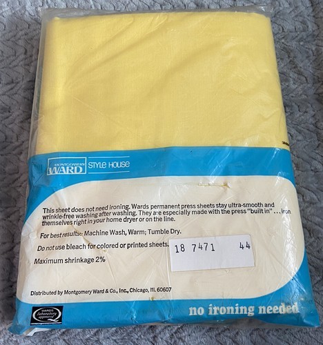 - Montgomery Ward Vintage Double Flat Sheet Yellow Muslin In Package No Iron NOS