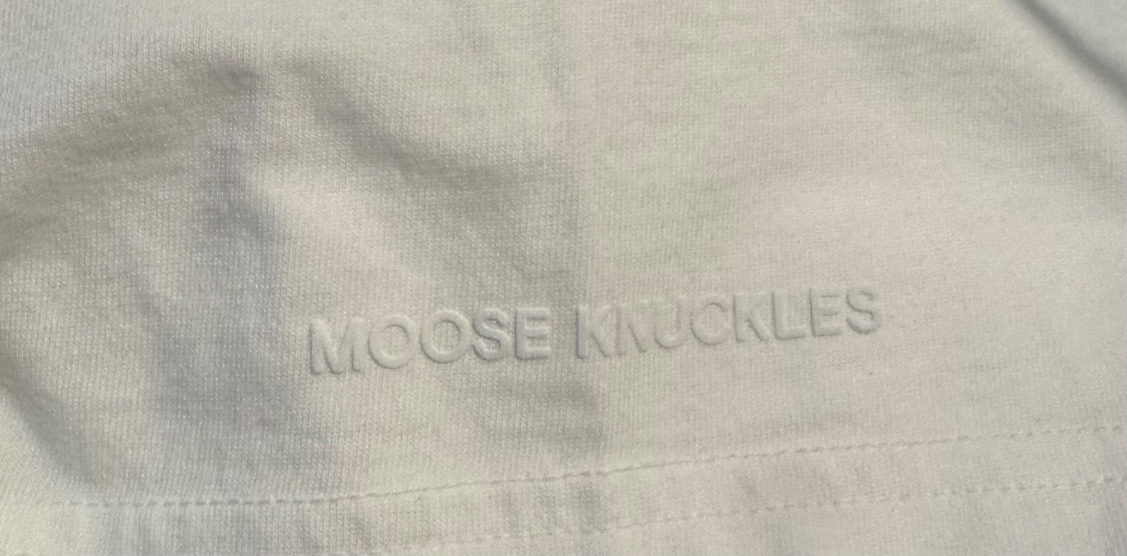 Moose Knuckles Essential Black Logo Graphic White T-Shirt Size M NWOT