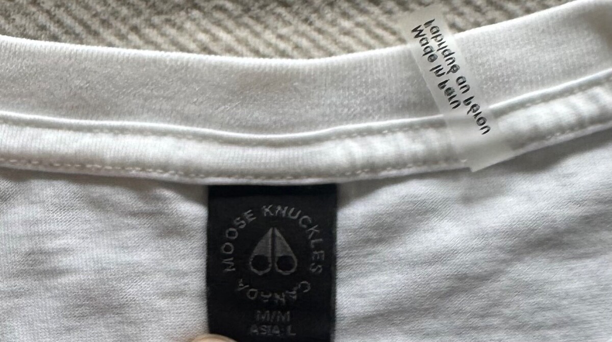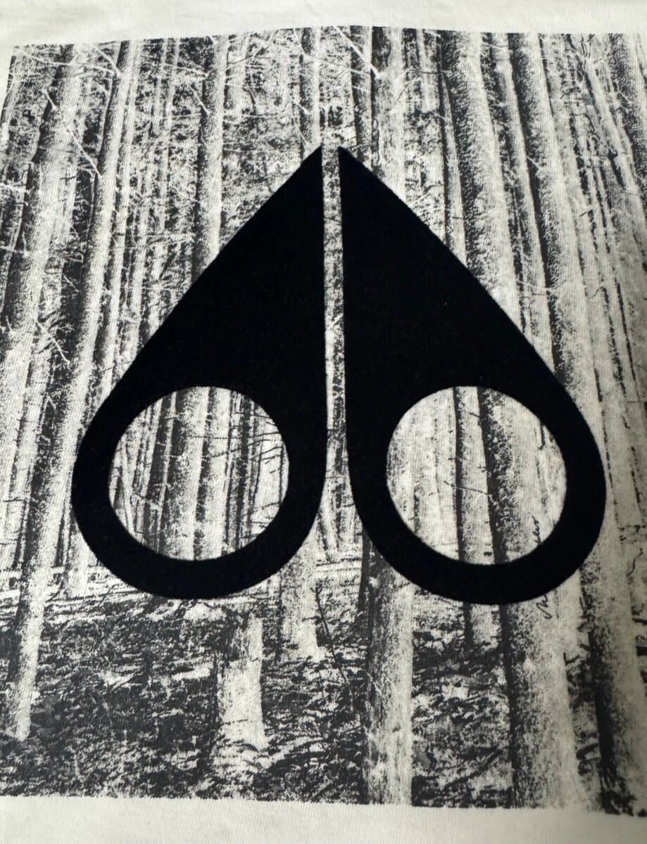 - Moose Knuckles Igneous Graphic Logo Cotton T-Shirt White and Black Size M NWOT