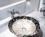- Mop & Abalone Shell Gemstone Wash Basin Round Kitchen Vessel Sink Vanity Top Dec