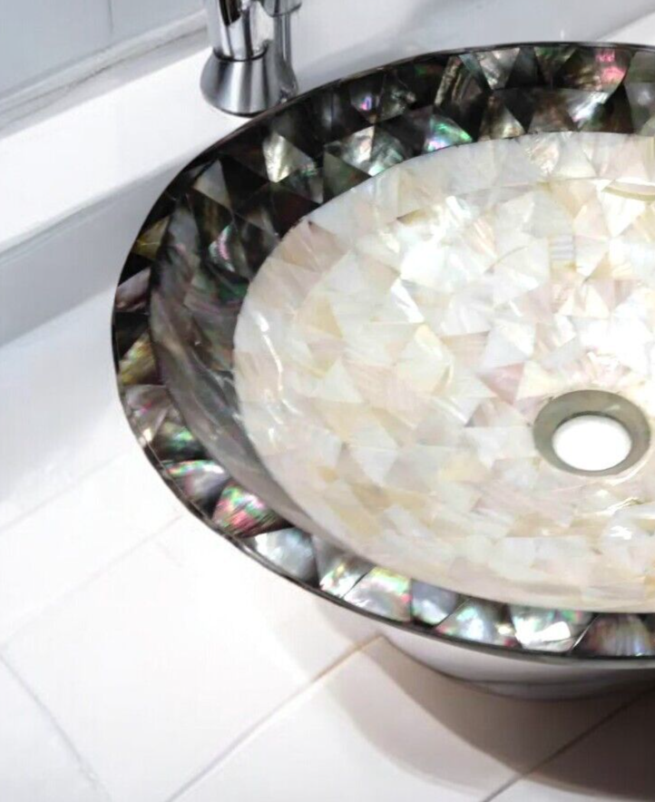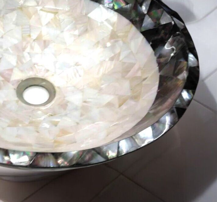 - Mop & Abalone Shell Gemstone Wash Basin Round Kitchen Vessel Sink Vanity Top Dec