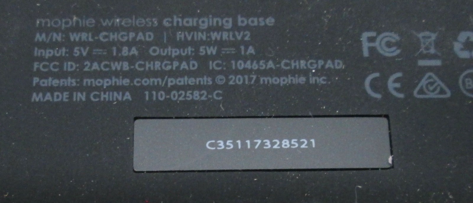- Mophie Wireless Charging Base With Charging Cord WRL-CHGPAD Black