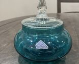 Morgantown Glass PALACE Candy Box Peacock Blue #9952 Decor Line Sticker MCM Vtg