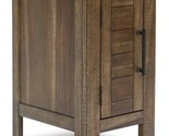 This chairside end table might appear simple at first sight. But a closer look reveals beauty in the details. With a plank-effect cabinet door, a tobacco brown finish and antiqued bronze-tone hardware, it?s simply beaming with charm. This side table's cabinet and tabletop space, along with USB charging, will serve you well for years to come.Additional Dimensions Cord length: 42.5" Door opening: 0" Adjustable shelf: 0" Product Features Made with acacia wood solids, veneer and MDF substrate Tobacco brown finish Antiqued bronze-tone hardware Single cabinet door 110V power supply with dual USB ports Power cord included; UL Listed Moriville - Grayish Brown - Chair Side End Table14.0"W x 17.0"D x 25.0"H - 37.0 lb