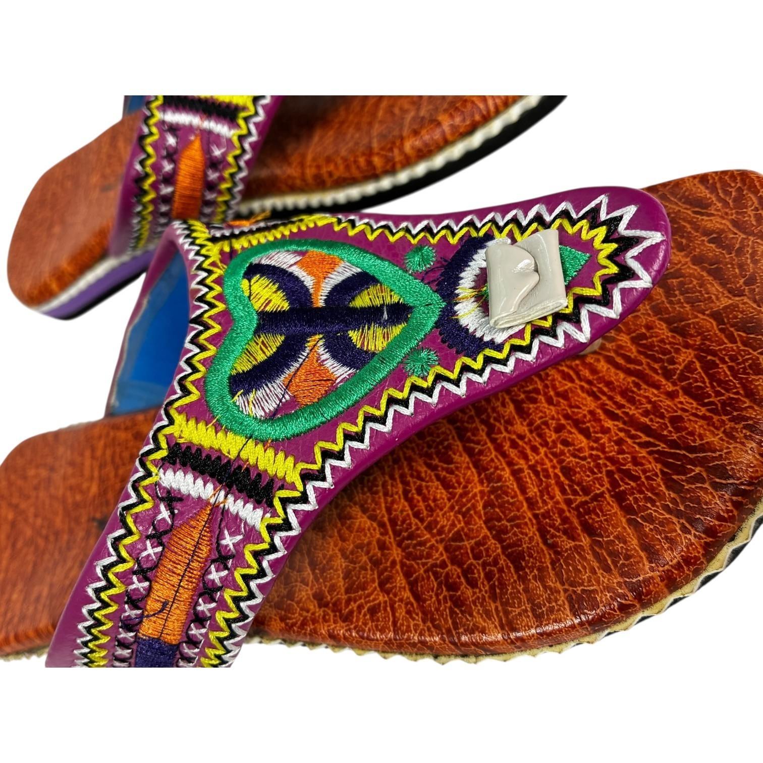 - Moroccan Boho Berber Agate Handcrafted Embroidered Women's Sandals size 7