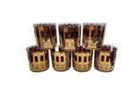 Morphew Abode 1960s Culver Burgundy Art Deco 22k Gold Lowball Cocktail Glasses