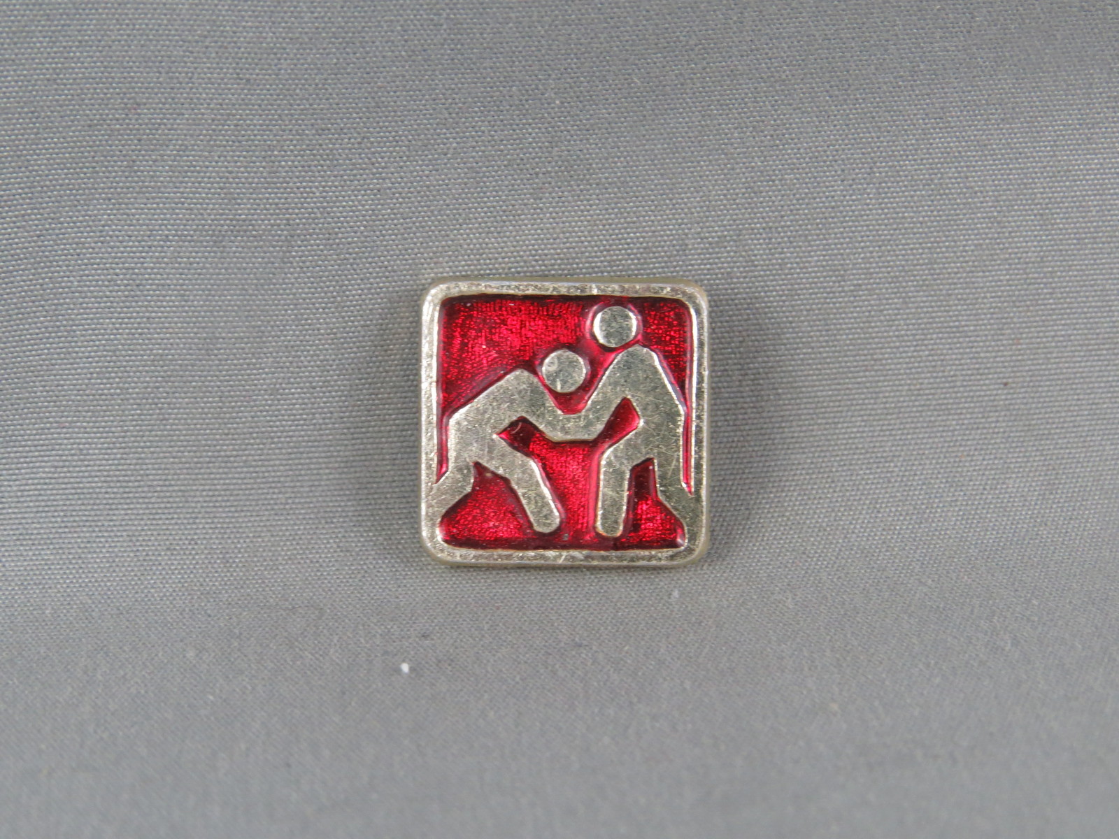 Up for sale is an event pin from the 1980 Summer Games. It has a red base colour with silver trim. The middle of the pin has 2 men wrestling stamped in. What a great addition to any pin collection.