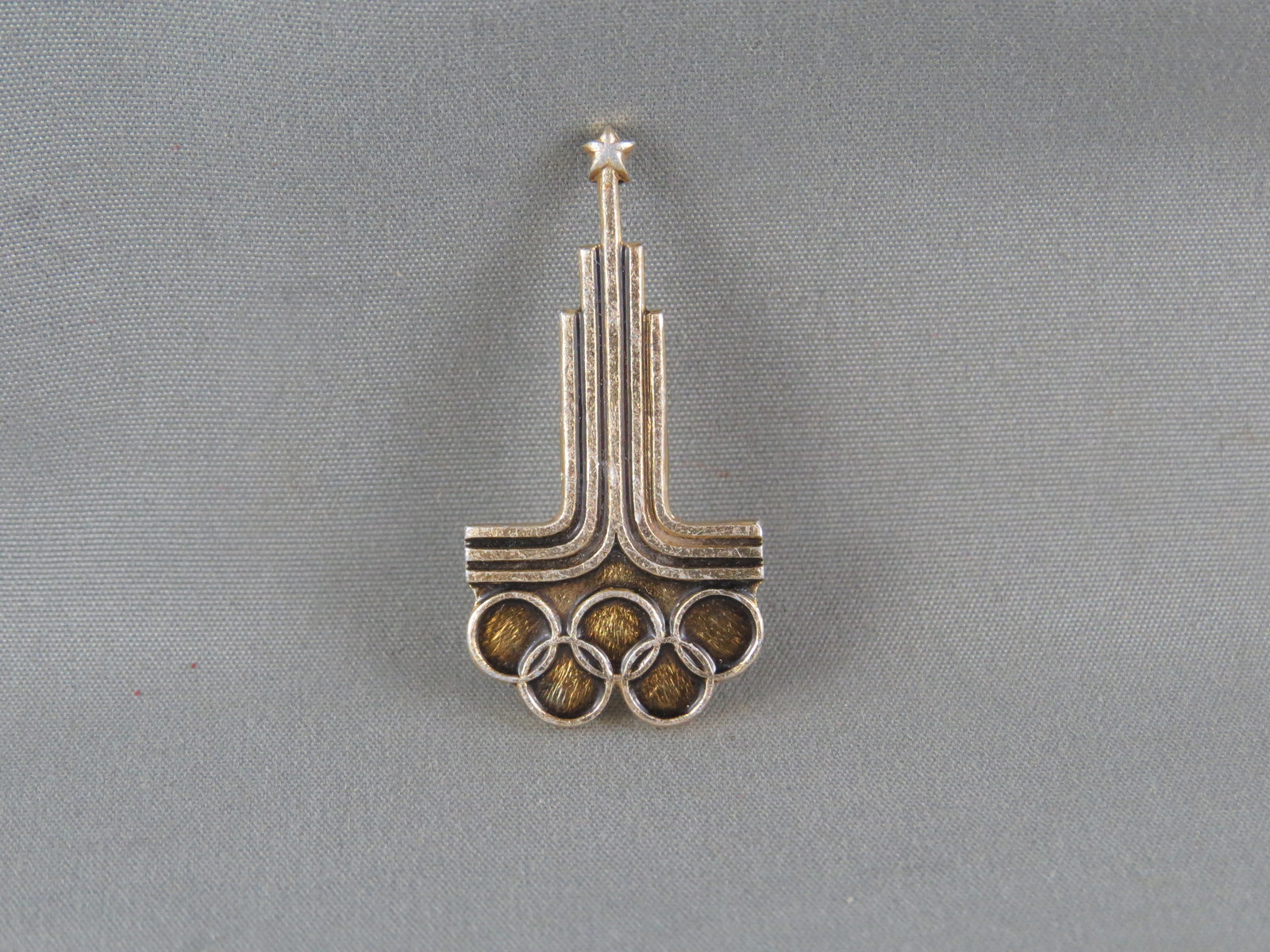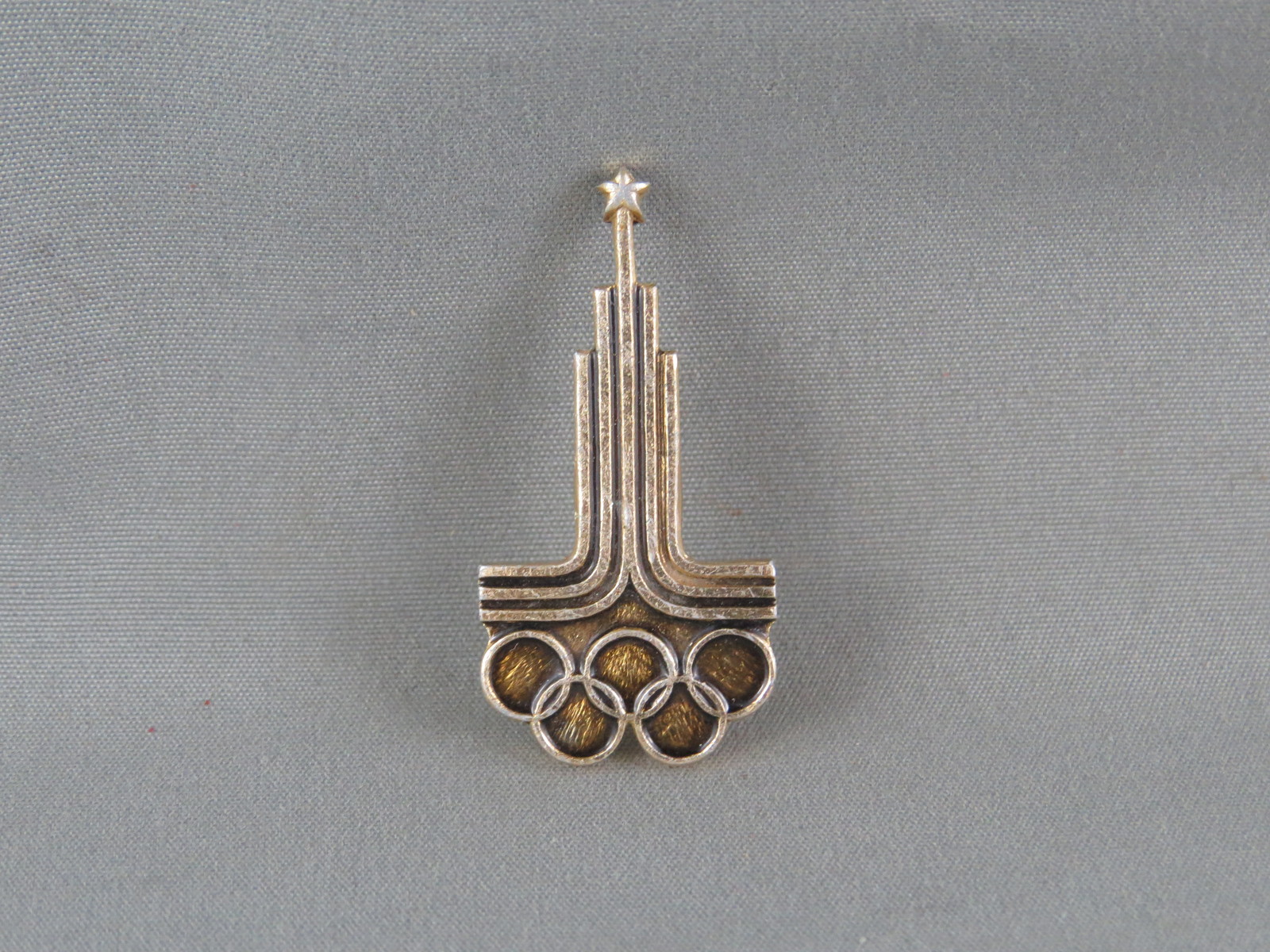- Moscow 1980 Olympic Pin - Official Logo Done in Silver - Stamped Pin