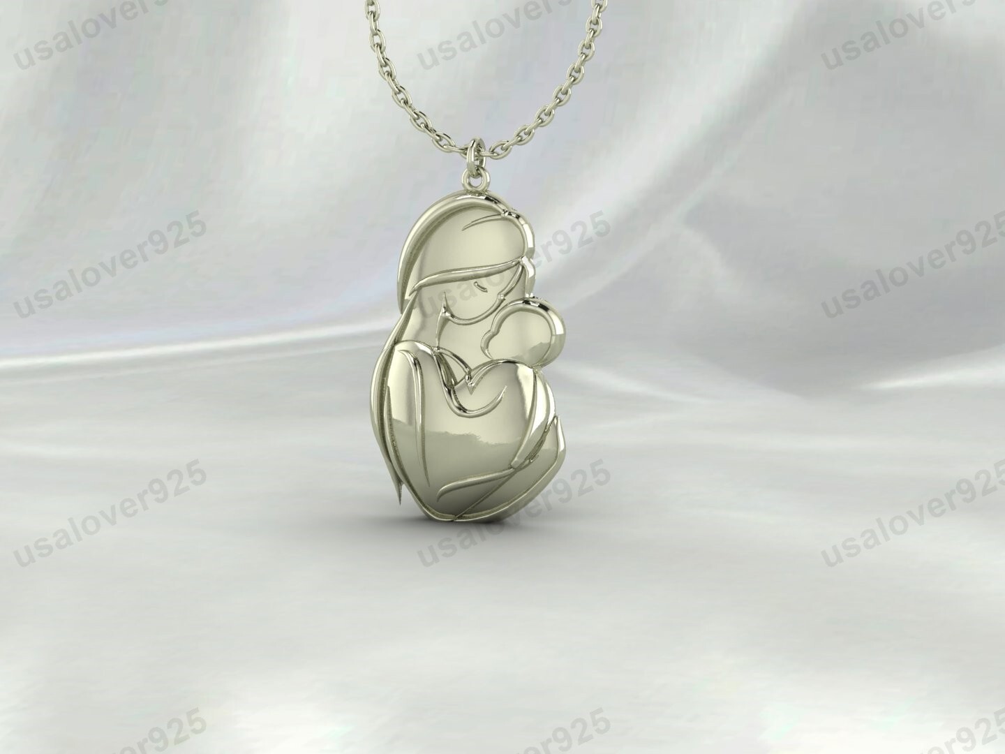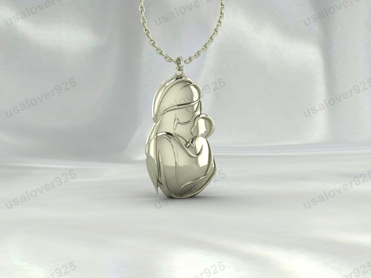 - Mother Baby Love Unique Pendant, 925 Sterling Silver Necklace Jewelry