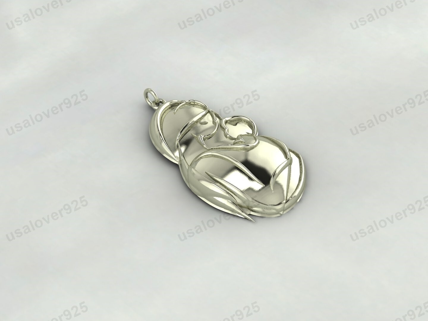 Mother Baby Love Unique Pendant, 925 Sterling Silver Necklace Jewelry