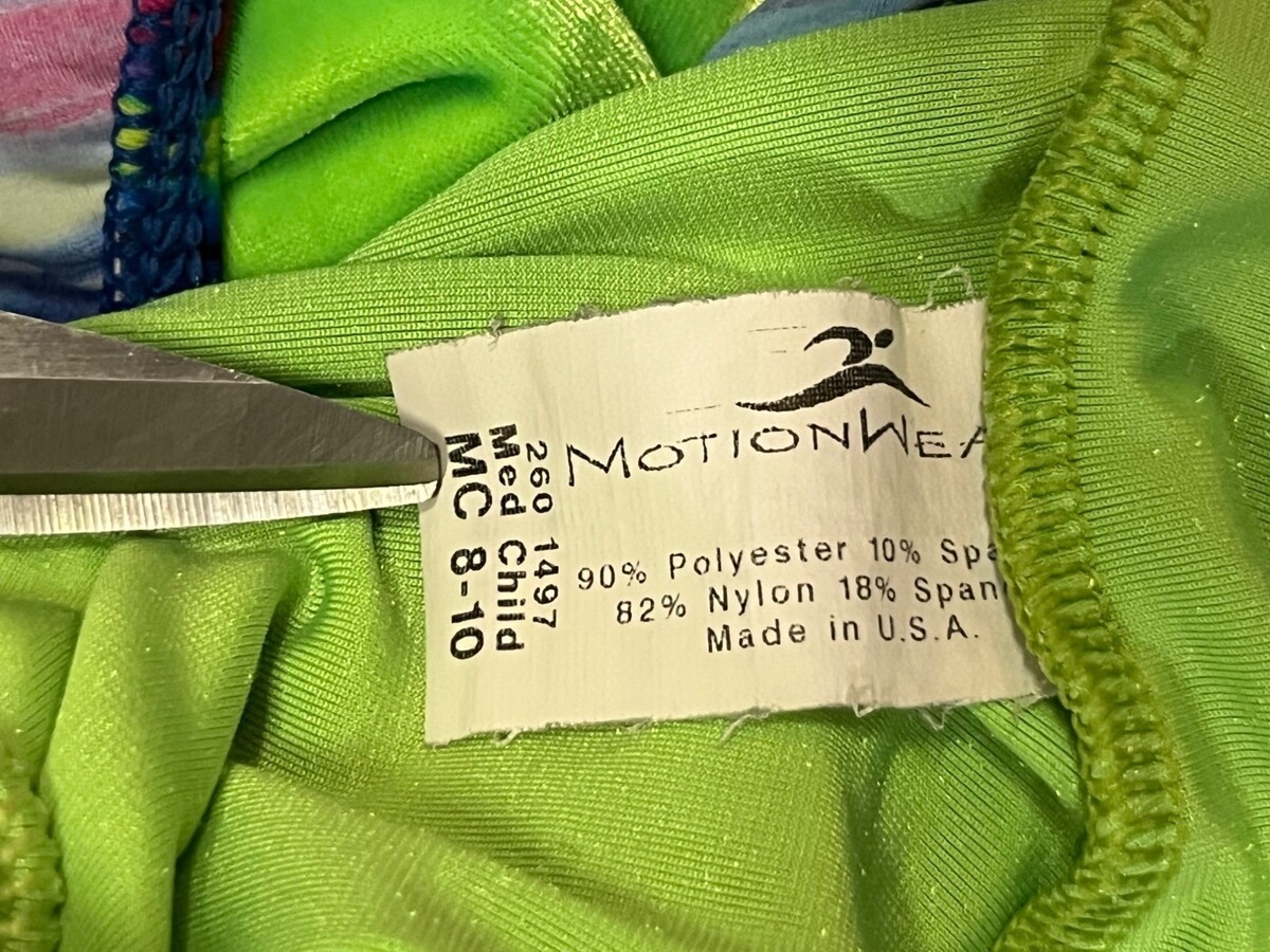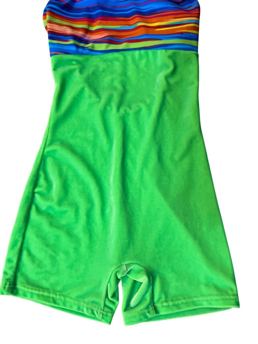 - Motionwear Gymnastics Shortall Leotard Girls 8-10 Green Velvet Rainbow Stripe