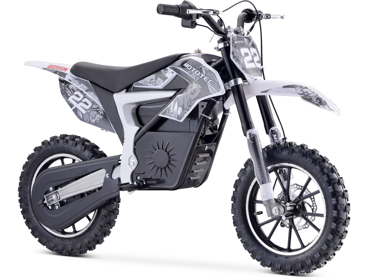 The MotoTec 36v 790w Demon Lithium Electric Dirt Bike is the ultimate kids ride! Great for driveway and backyard fun, cruise over bumps and speed through dirt trails with ease. Comes standard with front rear suspension, front rear brakes, parent selectable speeds and large knobby tires. The Lithium battery is substantially lighter, offers more performance and most importantly a longer ride time. In optimum conditions, up to 14 miles per charge.