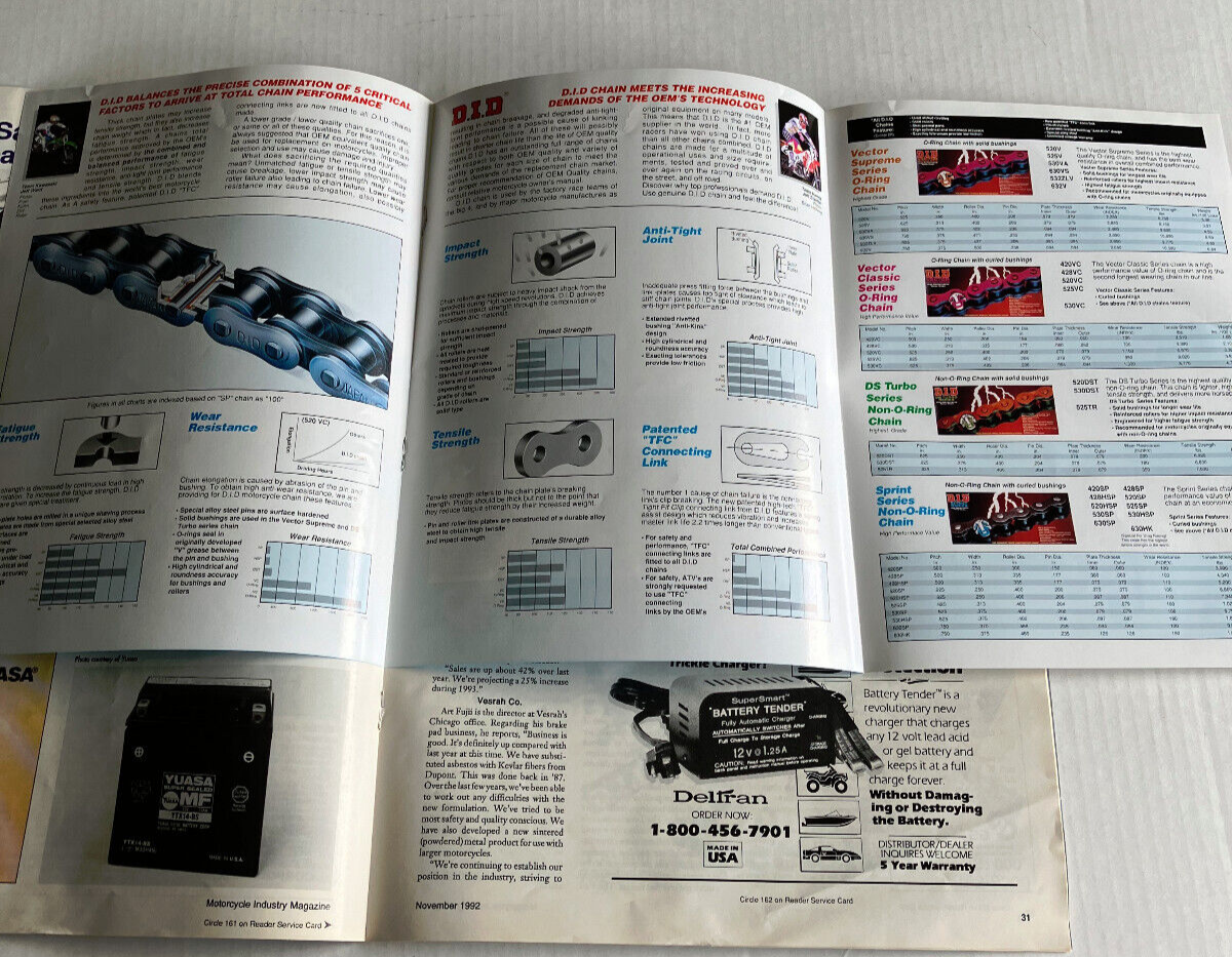 Motorcycle industry magazine November 1992 D.I.D. chain ad