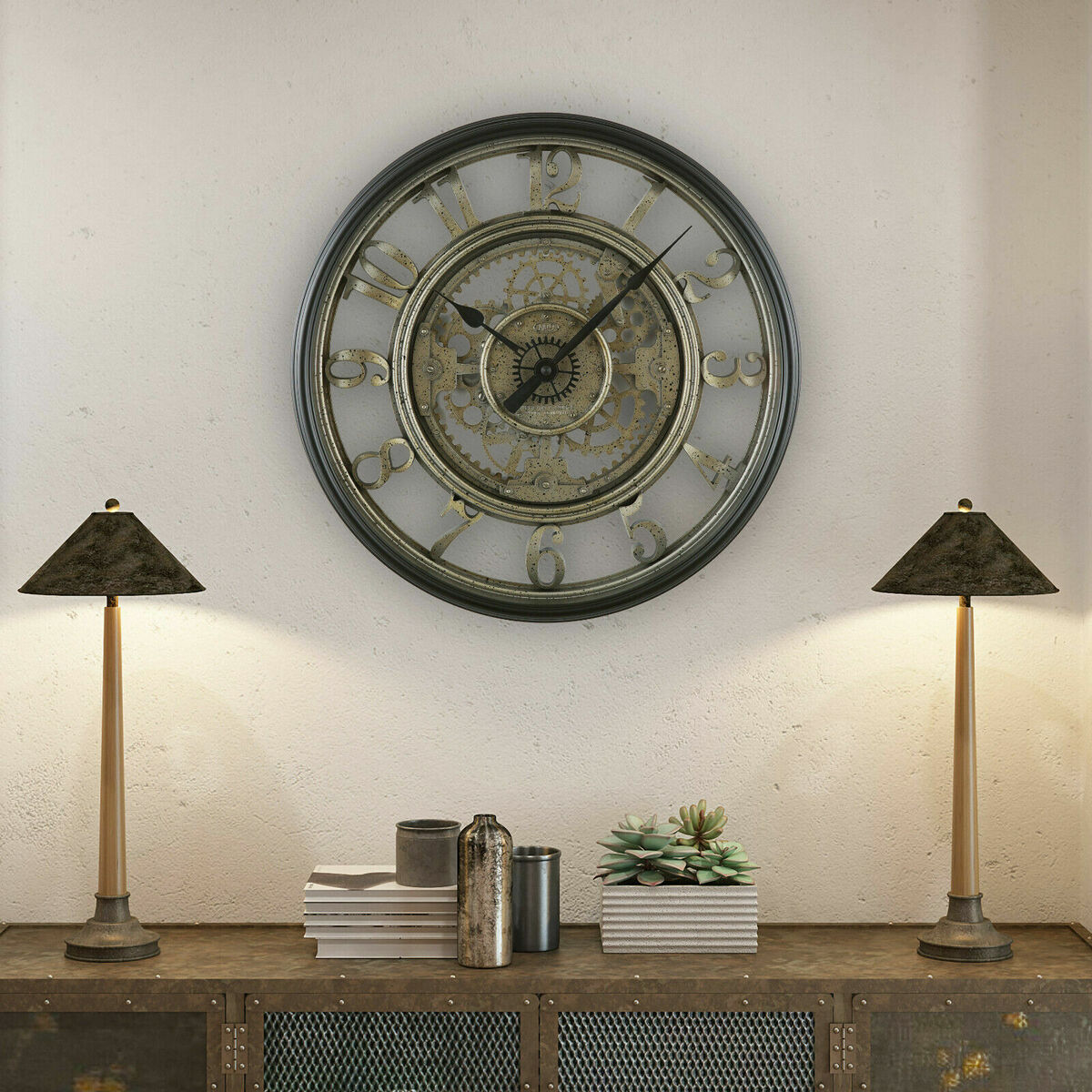 - Moving Gear 20" Large Wall Clock, Industrial Age Styling, Modern Rustic, Quartz