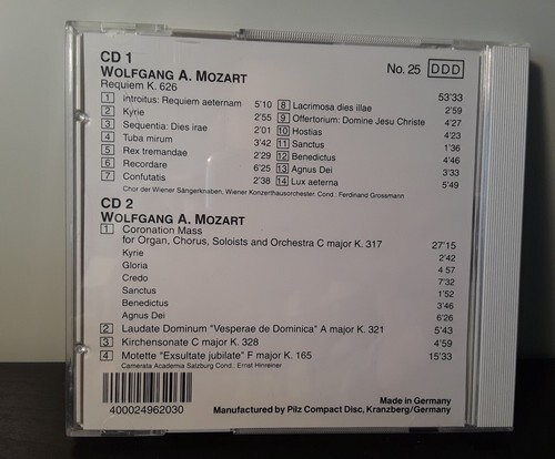 - Mozart Requiem K. 626, Coronation Mass (2 CDs, 1992, Pilz)