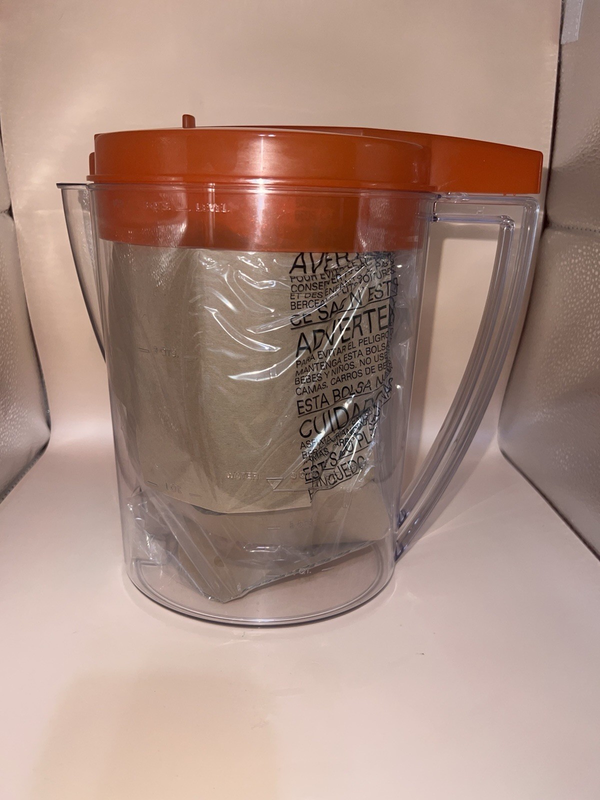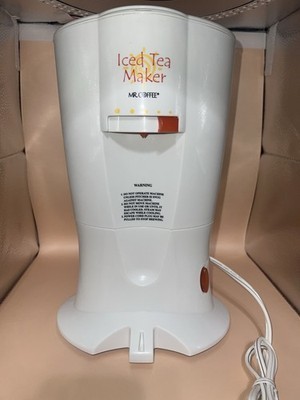 The Mr. Coffee 3 Quart Iced Tea Maker TM20B is a vintage 2003 old stock appliance that allows you to easily brew up to 12 cups of delicious iced tea. This red (maybe orange) and white plastic maker has a shiny finish and is designed to make the perfect pitcher of iced tea every time. With its retro design and durable construction, this iced tea maker is a must-have for any home tea lover.