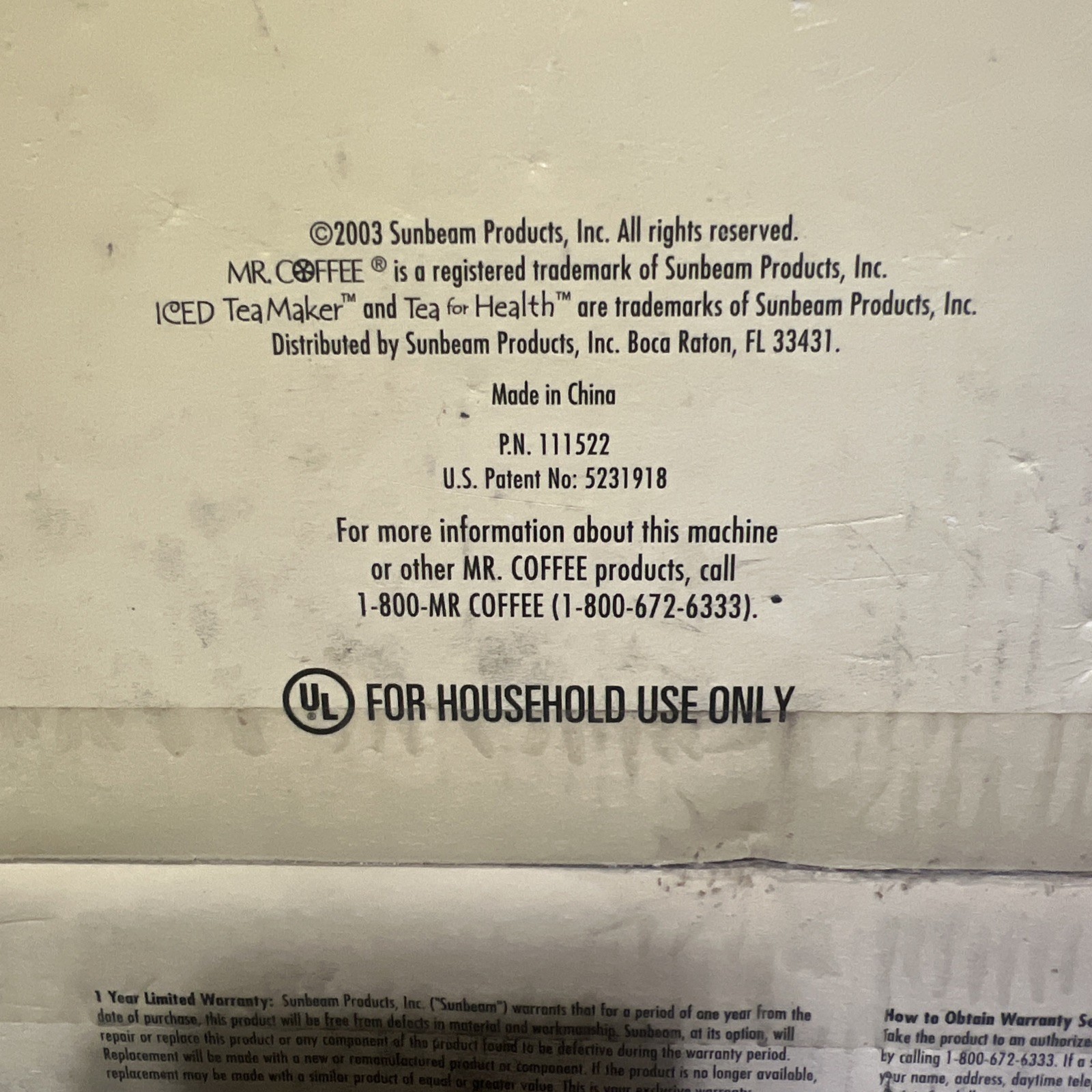 - Mr Coffee 3 Quart Iced Tea Maker TM20B Red VTG 2003 Old Stock Extra Brew Basket