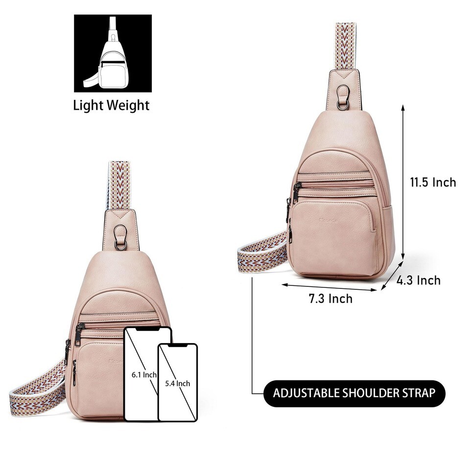 CROSSBODY BAG PRACTICAL STRUCTURES - The dimension of this women's sling bag is 4.3 x 11.5 x 7.3" (L x H x W) .This crossbody sling bag has three zippered pockets in the front,a headphone jack in the back. It can hold ipad mini, powerbank, phone, money/cards, passport, airpods, etc. Please Note: Due to the screen display effect, the product pictures may appear larger than they actually are, please refer to the exact dimensions provided before purchase.