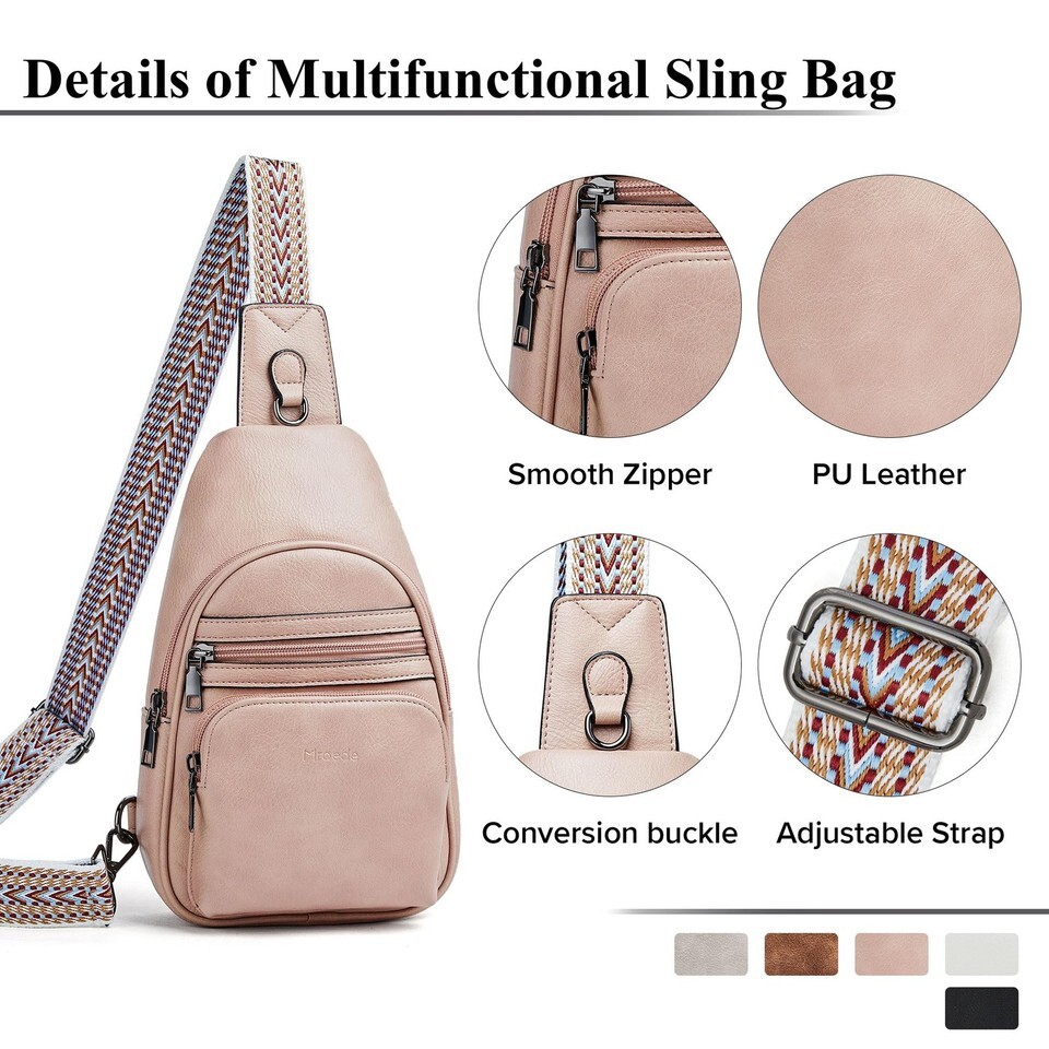 STRONG AND DURABLE MATERIAL - Mroede sling bags for women crossbody is made of vegan PU leather, which is comfortable, lightweight and water resistant, faux leather is durable and easy to clean. This sling bags with smooth zipper for durable use.