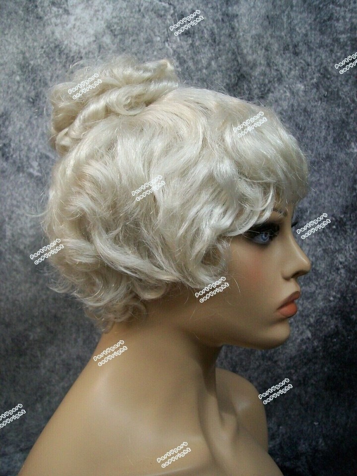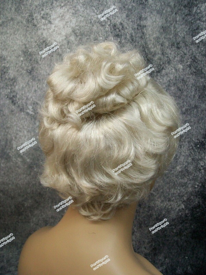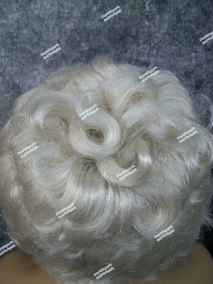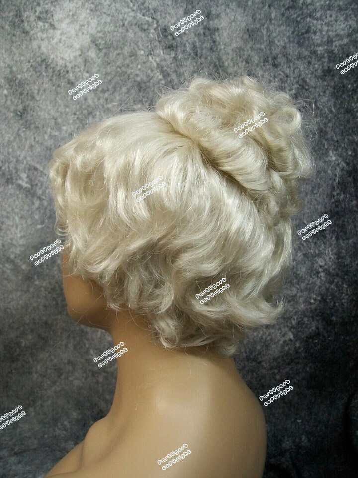 Mrs Santa Claus Costume Wig. Overall Short style with layers and a shorter layered row of curls on top to form a bun updo look. The layers will need to be fluffed / picked out some to conceal the net on the cap. EXPECT SHEDDING. The color is very odd, it's like odd shade of blonde. Not really white or gray. Has a semi dome cap. The cap feels a tad larger on this wig. May need some light stuffing if more height if desired. One Size Fits Most. The updo part is kinda placed farther to the back so the wig may need secured to the natural hair with pins or clips (pins / clips not included) As with most light wigs, Fiber will need adjusted to conceal wig netting. Those with darker natural hair may want to consider a light colored wig cap with light color or white wigs in order to keep dark colored hair concealed underneath, otherwise, natural hair may be visible through fiber. (Wig cap is not included). DOES NOT INCLUDE GLASSES OR ANY OTHER ACCESSORIES.