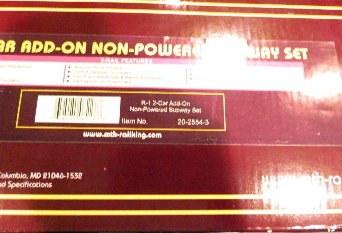 Directionally Controlled Headlights - Intricately Detailed ABS Bodies - Metal Wheels and Axles - Die-Cast Truck Sides - (2) Remotely Controlled Proto-CouplersT - Authentic Paint Scheme - Operates on 0-42 Curves - All Metal Wheels and Gears - Illuminated Destination Boards - (2) Precision Flywheel Equipped Motors In Power Unit - Metal Chassis - Lighted Interior - Proto-Soundr 2.0 With the Digital Command System Featuring Passenger Station Stop Proto-EffectsT - 4-Car Set Measures: 64" x 2 1/2" x 3 3/8"