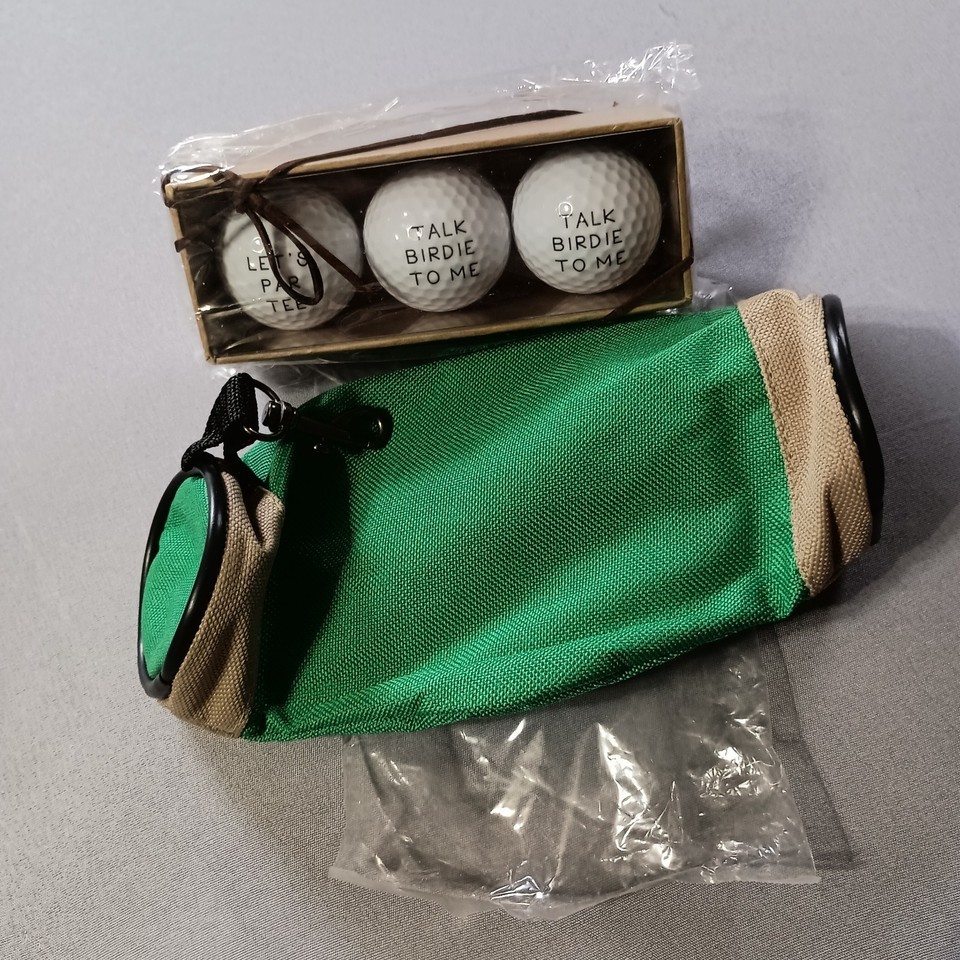 Mud Pie Humorous Golf Balls Let's Par Tee & Talk Birdie To Me & Green Ball Bag