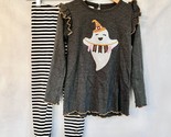 Mudpie Girls Halloween 4T Long Sleeved Shirt Cat Jack Leggings Grey Black Sequin EUC