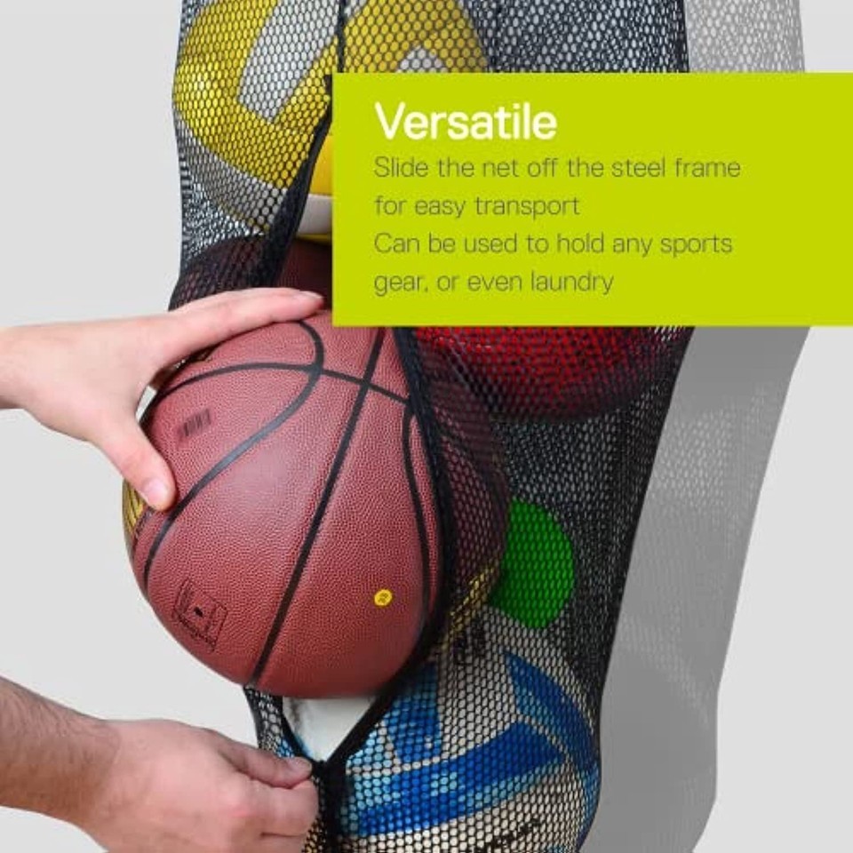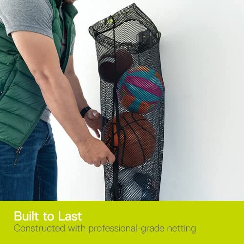 Original Design: Holds multiple balls for almost any sport, including soccer, baseball, basketball, volleyball and more. For added functionality, hold your other sports gear, or even laundry behind a door! Rip-resistant mesh is durable and will withstand elements on and off the field. The open weave design allows for breathability to dry when wet, and easy viewing of your cargo.