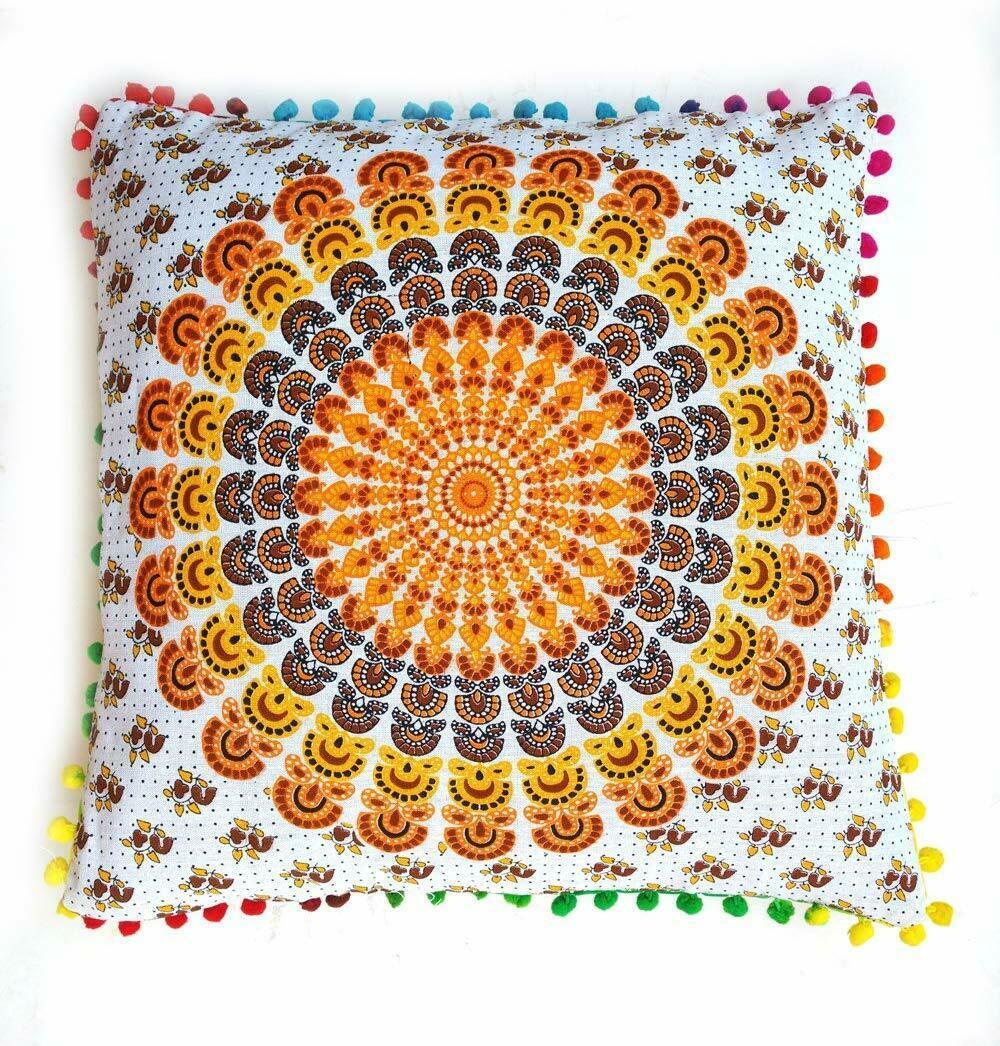 - Multi Colored Pom Pom Mandala Elephant Throw Pillow Cover Case for Couch Sofa