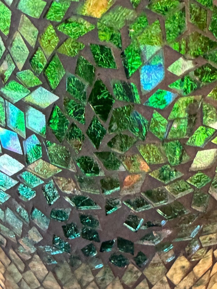 If placed in sunlight or bright light, the mosaics shoot dancing sparkles all over the walls!