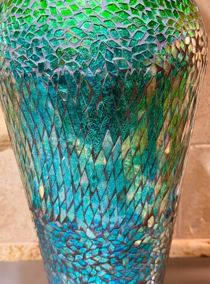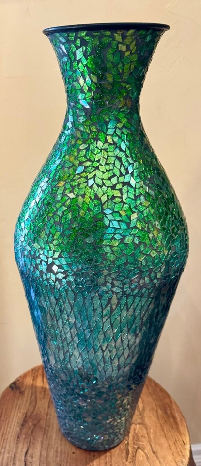 - Multi-Colored Tempered Mosaic Glass Vase 20”Home Decor Sparkle Crackle