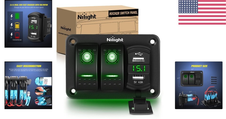 Multi-functional Design: Integrated with 2 rocker switches, a 4.8a dual USB charger, and a voltmeter, suitable for most 12V-24V DC vehicles.