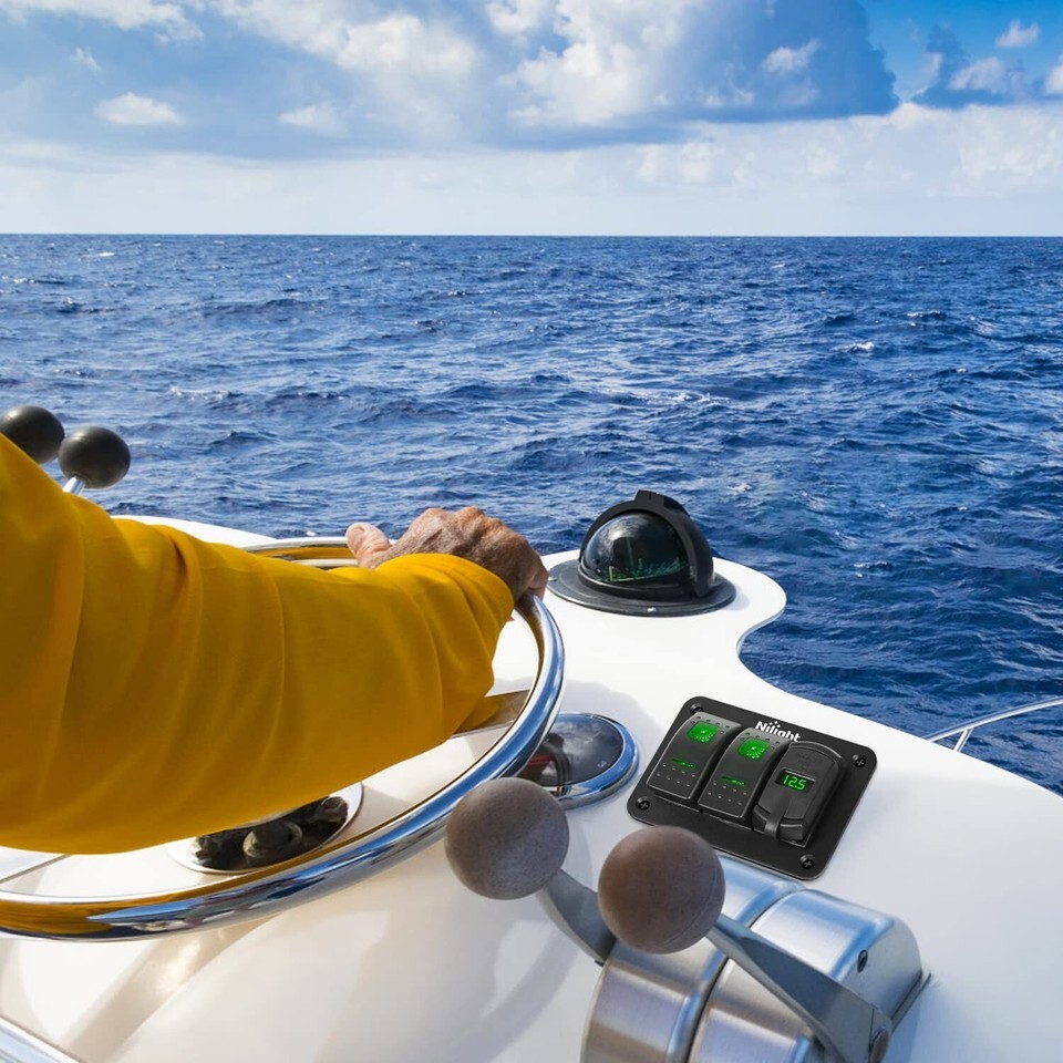 - Multi-Function 2 Gang Switch Panel with Green LED, USB Charger, and Voltmeter