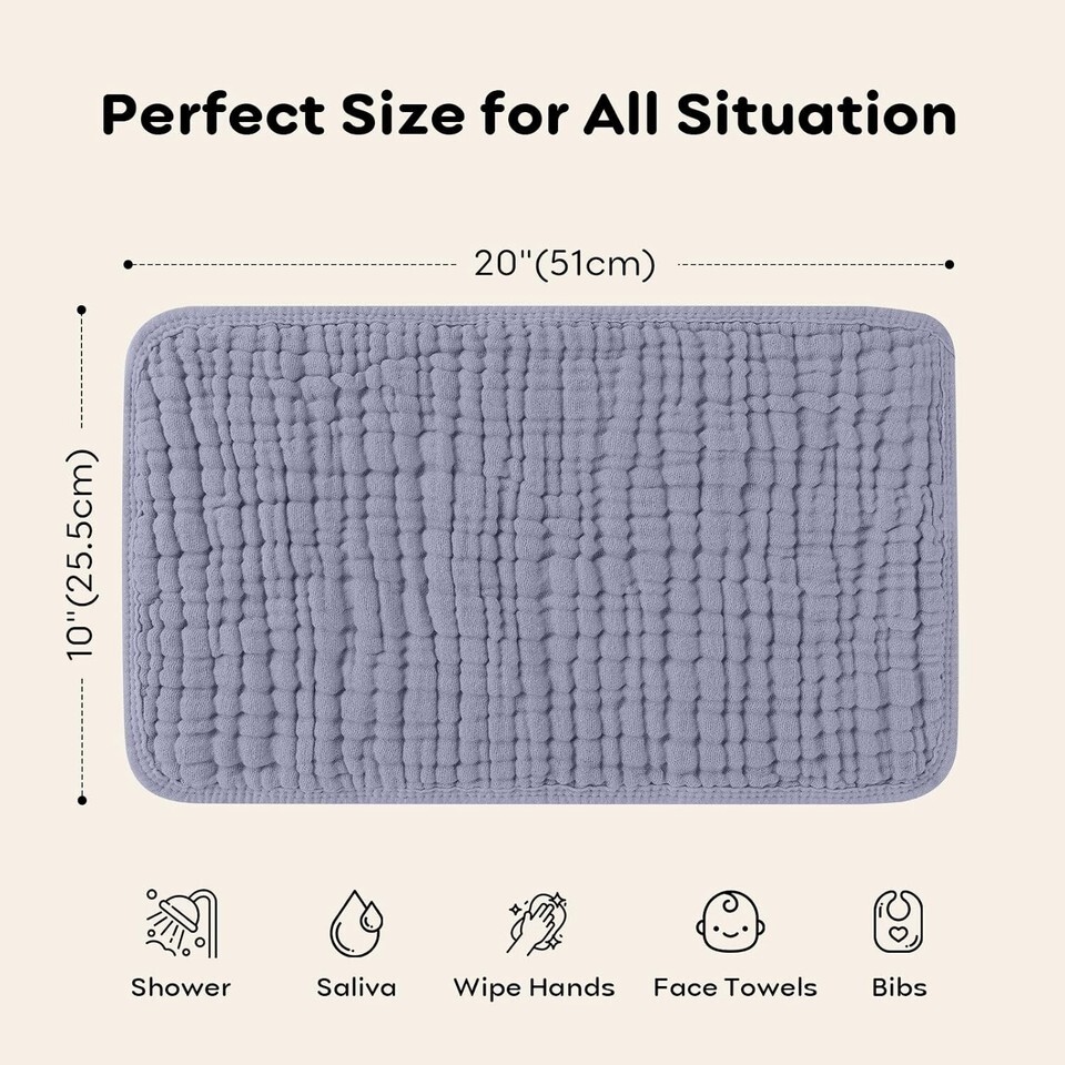 Multi-Functional Use: Measuring 20x10 inches, these versatile cloths can be used as reusable baby wipes, burp cloths, baby face towels, cloth diapers, body washcloths or even adult face towels, catering to all your daily needs.
