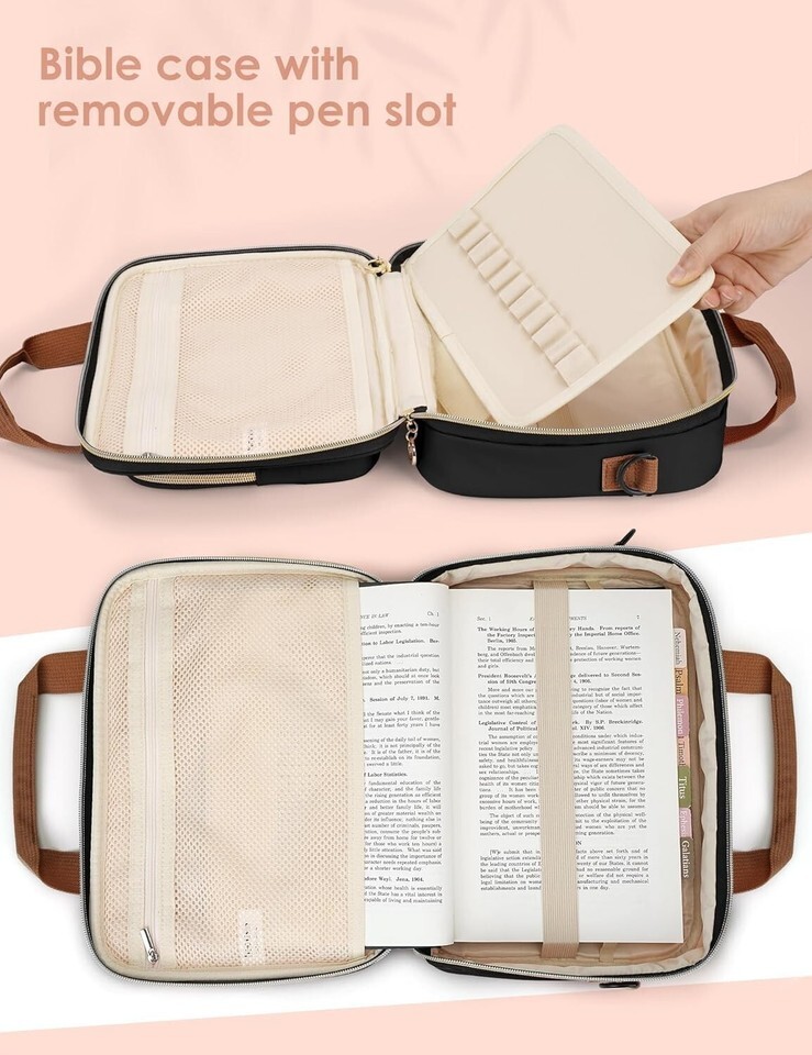 Large Size: Measures 12? x 8.5? x 2.5?, accommodating standard or large-sized Bibles, notebooks, and iPad up to 11?.